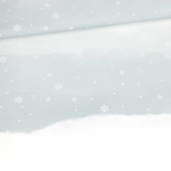 Hier auf einem pastell petrolgrauen Hintergrund als Batikverlauf zu weißer Schneefläche, umgeben