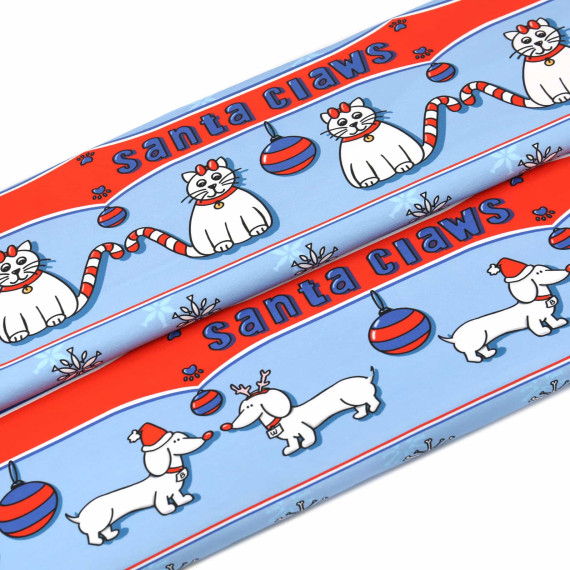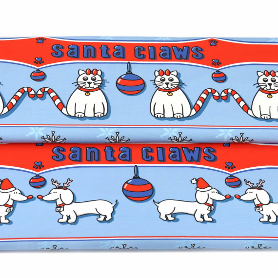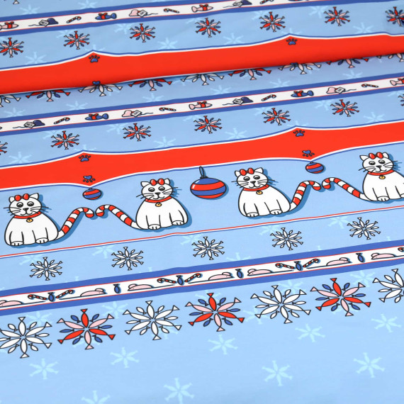 0,8m Zuschnitt - Sommersweat - Santa Claws - Katzen - Hellblau - Bio Qualität - Zwergpinguin - abby and me