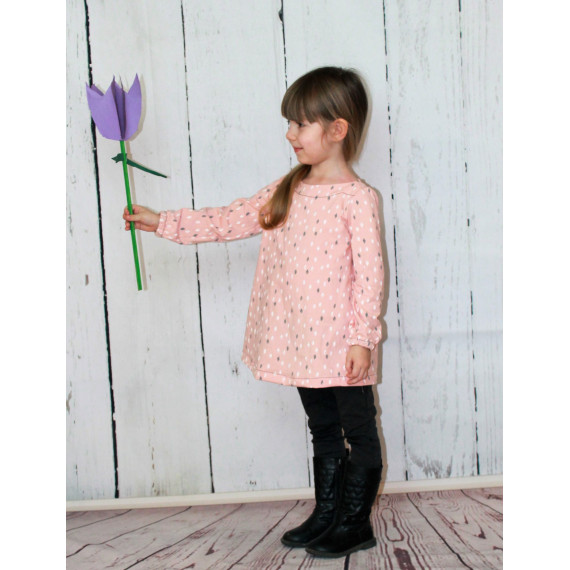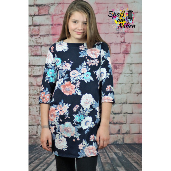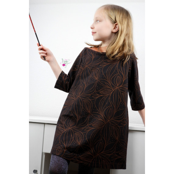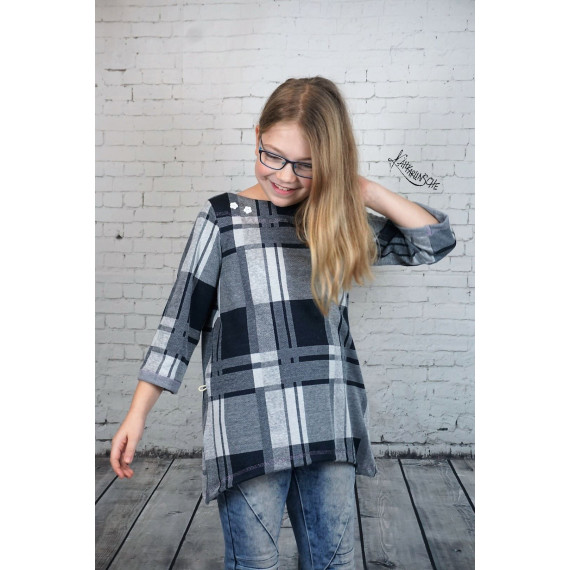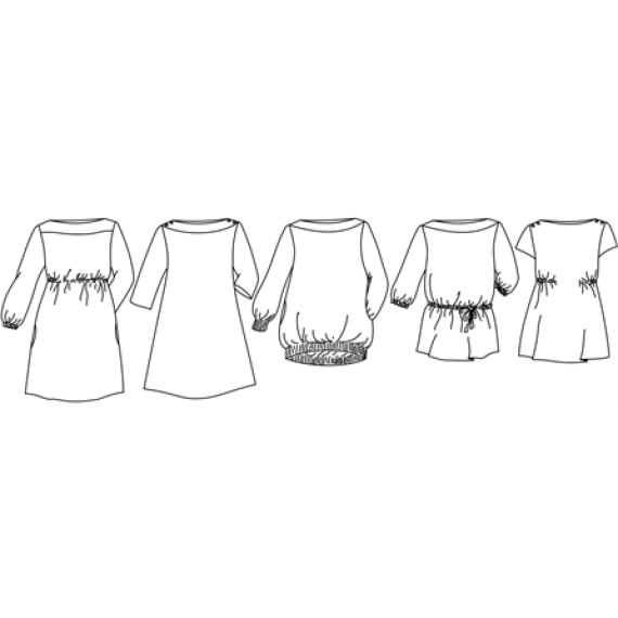 EasyDress ist ein einfaches, weit geschnittenes Kleidungsstück mit schlichter A-Linien Schnittführung. Von Tunika bis Kleid ist dieser Schnitt trotz seiner Einfachheit sehr vielseitig und kleidet sowohl sehr schmale als auch kräftig gebaute Trägerinnen perfekt. Dank der Beleg-Verarbeitung am Halsausschnitt in U-Boot-Form wirkt das Kleidungsstück besonders und keinesfalls langweilig. Kurze, lange oder 3/4 lange Ärmel, mit Gummizug oder locker fallend; Teilung am Kragen als besonderer Farbtupfer; mit Gummiband oder Kordel in unterschiedlichen Höhen auf Figur gebracht oder einfach nur Figur umspielend; mit oder ohne Knopfverschluss an den Schultern; aus Jersey oder aus einem locker fallenden Blusenstoff – du entscheidest über das Ergebnis deines einzigartigen Nähprojektes. Dank der wenigen Schnittteile ist dein Projekt im Nu zugeschnitten und genäht und jedes von dir genähte EasyDress sieht anders aus, wenn du es deiner Kreativität erlaubst.