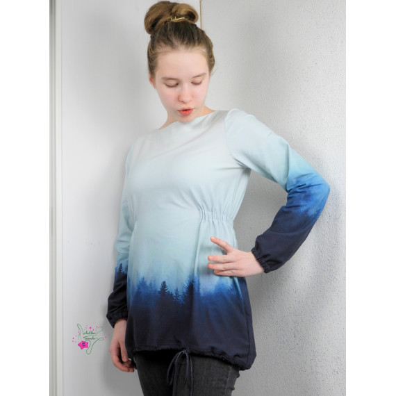 Der Schnitt ist in erster Linie für leichte dehnbare Materialien wie Jersey (oder leichter Sommersweat und Strick) ausgelegt, aber auch leichte nicht dehnbare Blusenstoffe kannst du verwenden, wenn du dabei ein paar Spielregeln in der Verarbeitung dieser Stoffe beachtest. Auf diese Besonderheiten weise ich dich in dieser Anleitung hin.