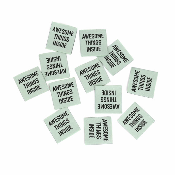 Hier ein Label mit dem Schriftzug "AWESOME THINGS INSIDE"