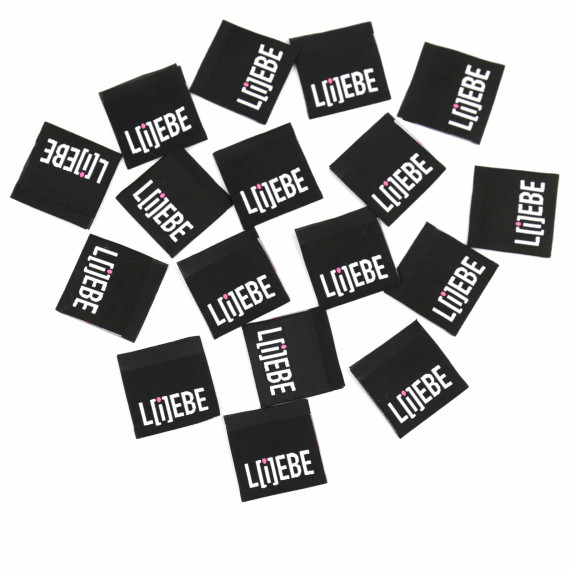Hier ein schwarzes Label mit "L[I]EBE" Schriftzug in Weiß und einem...