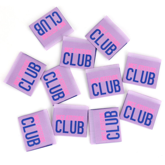 Hier ein Label mit dem Schriftzug "NICE ATTITUDE CLUB" in Pink und Blau