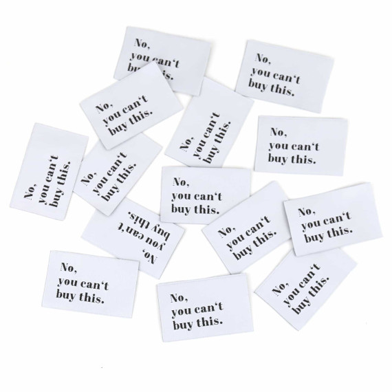 Hier ein Label in Weiß und dem Text "No, you can't buy this." in Schwarz.