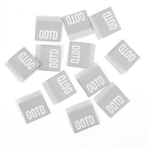 1 tolles gewebtes Label mit Mittelfaltung zum in die Naht Einnähen! Hier ein hellgraues Label mit "OOTD" Schriftzug in Weiß.