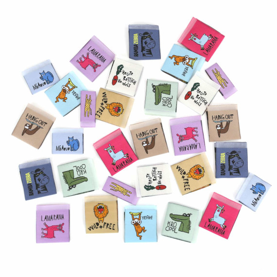 1 tolles gewebtes Label mit Mittelfaltung zum in die Naht Einnähen!