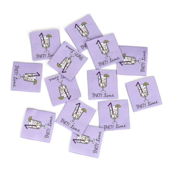 Hier ein Label mit dem Wort "PARTYtime" und einem Cocktail