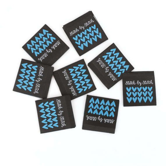 Hier ein Label mit dem Text "stitch by stitch" in Weiß, 15 kleinen...