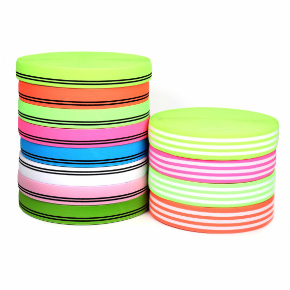 1 Meter wundervolles Gummiband in 40mm :) Hier in Neonorange mit drei weißen Streifen!:)