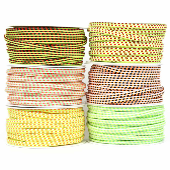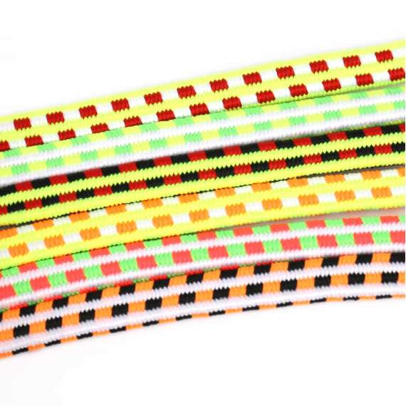 1 Meter Gummiband - 6mm - Muster - Weiß/Schwarz/Neonorange