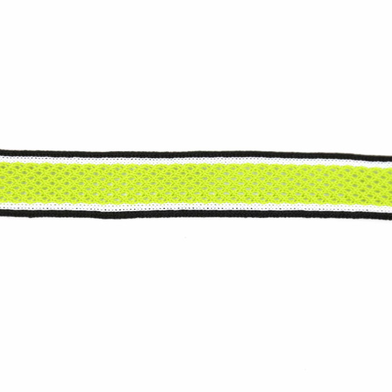 1 Meter wundervolles Zierband in Netzoptik mit seitlichen weißen und schwarzen Streifen! :) Hier in Gelbgrün!