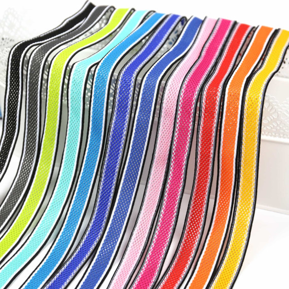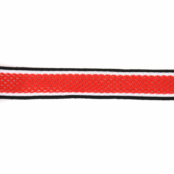 1 Meter wundervolles Zierband in Netzoptik mit seitlichen weißen und schwarzen Streifen! :) Hier in Rot!