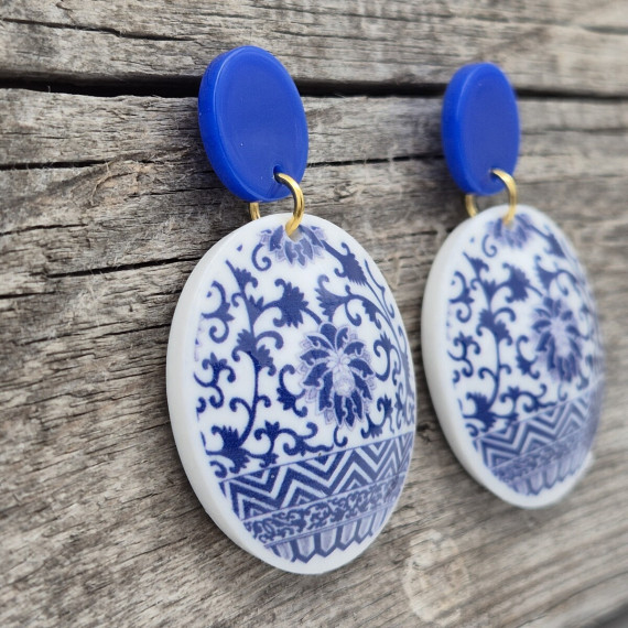 1 Paar Ohrringe - Acryl - 2-teilig - 2 Kreise - super leicht - Blau/Weiß - Namensklang