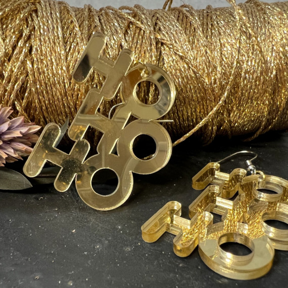 1 Paar Spiegel Ohrringe - HoHoHo - Gold - Winter - Weihnachten - Schriftzug - super leicht - Statement Ohrringe - Namensklang