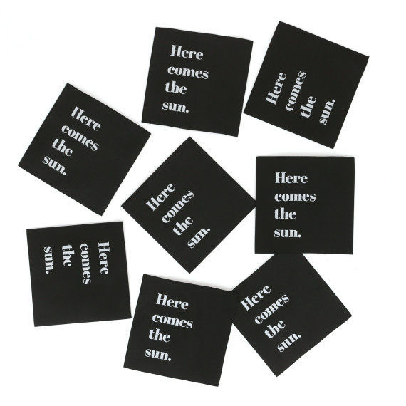 Hier ein super großes Label mit dem Text "Here comes the sun." auf einem