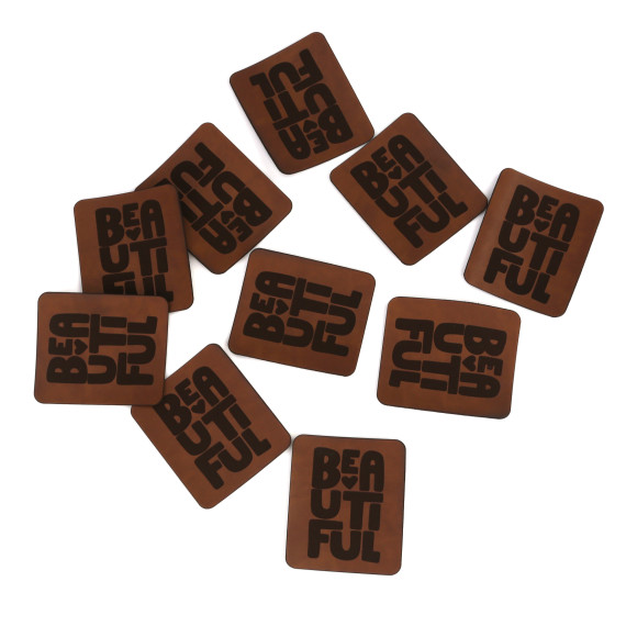1 XXL Kunstleder Label "BEAUTIFUL" mit einem kleinen Herzchen in Dunkelbraun :)