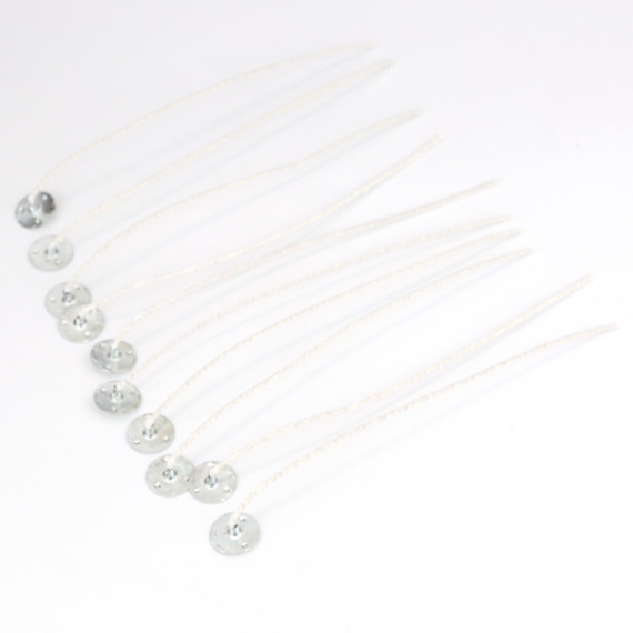 10 Baumwolldochte mit Metallfuß für die Herstellung von Stand- und Formkerzen sowie Gefäßkerzen! :)