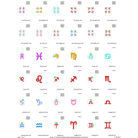 Alle 12 Sternzeichen als ITH Schlüsselanhänger mit Anleitung, passend für den 10x10 Rahmen