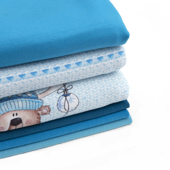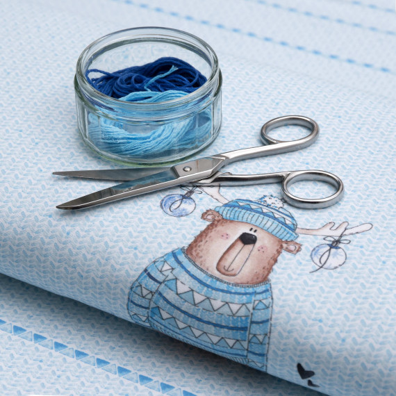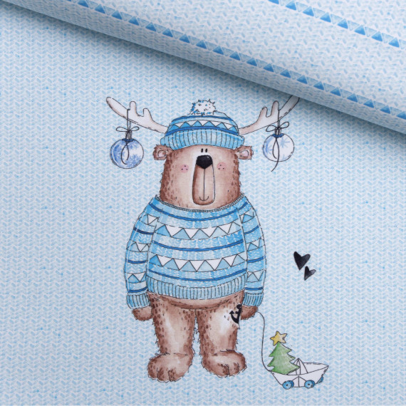 1,6m Zuschnitt - Sommersweat - Bio Qualität - Paneel - Kleiner Weihnachtsbär - Weihnachten - Strickoptik - Hellblau - Treeebird - abby and me