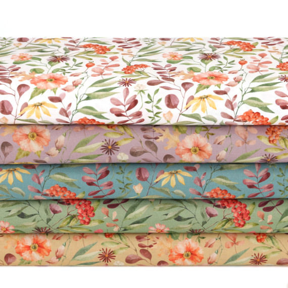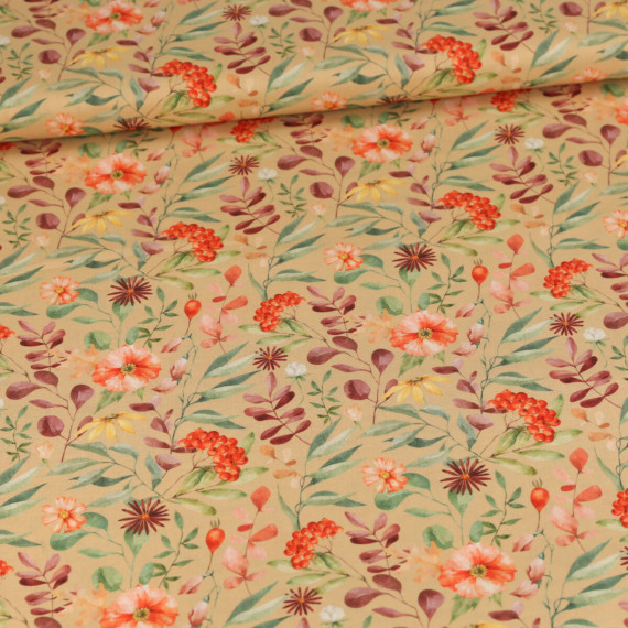 1,8m Zuschnitt - Baumwolle - Webware - Bedruckt - Watercolor - Flowers - Beige