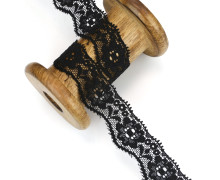 1m Elastische Spitze - Herzen - 23mm - Schwarz