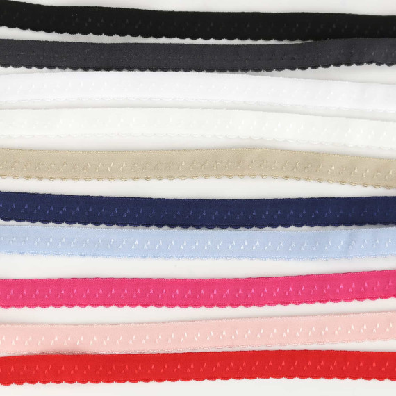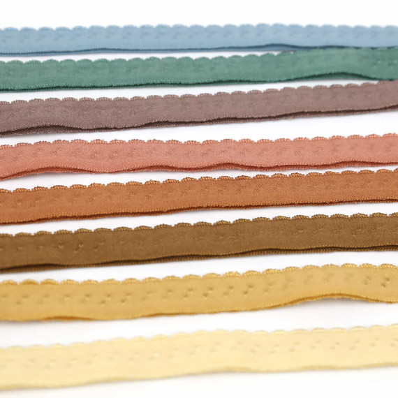 1 Meter elastisches Schrägband mit hübscher Bogenkante und einem kleinen aufgestickten Muster :)