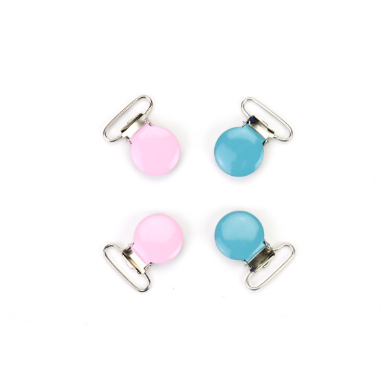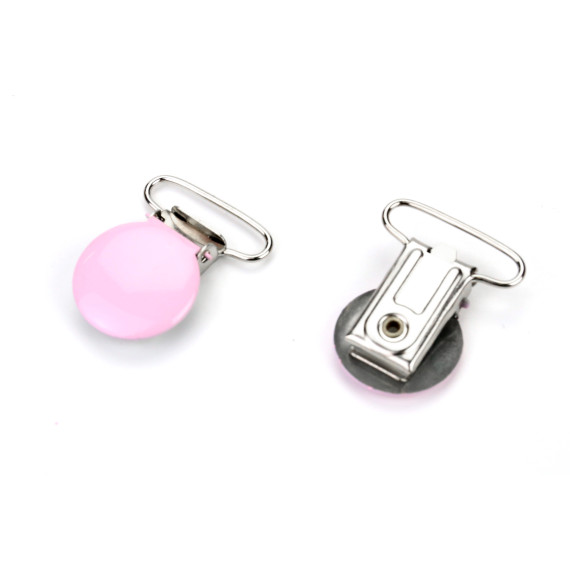 2 Hosenträgerclips - Schnullerclips - Rund - 25mm - Rosa