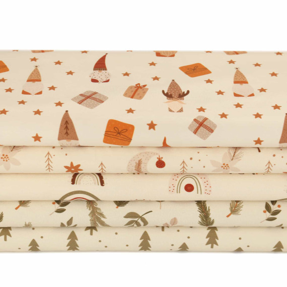 2 Zuschnitte - Sommersweat - Gifting Gnomes - Tannenbäume - Beigegrün Hell - Bio Qualität - abby and me