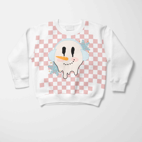 Wunderschöner Sommersweat mit einem Schneemanngesicht und Kästchenmuster