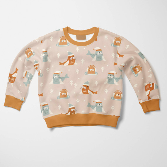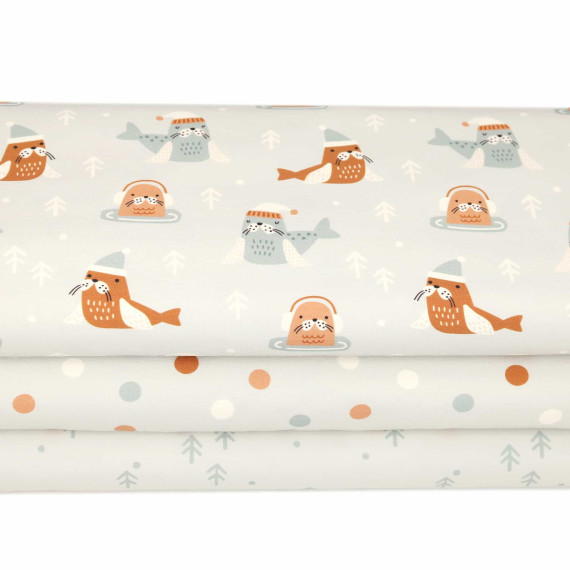 2,65m Zuschnitt - Sommersweat - Winter Robben - Kombistoff - Tannen - Creme Blau Hell - Bio Qualität - abby and me