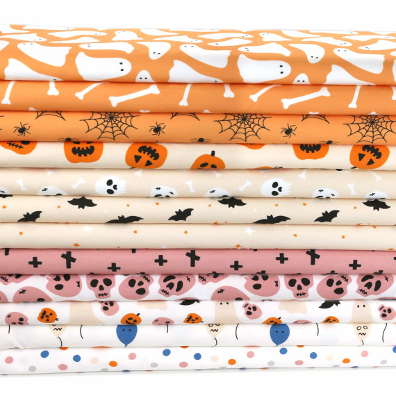 2,7m Zuschnitt - Sommersweat - Midnight Mysteries - Knochen - Hellorange - Bio Qualität - abby and me