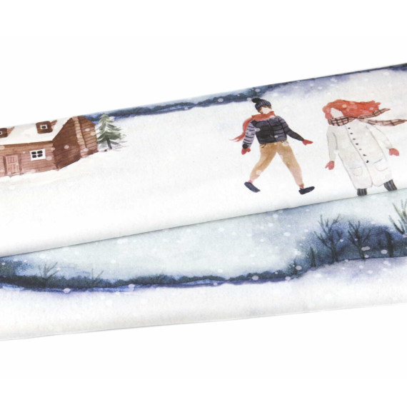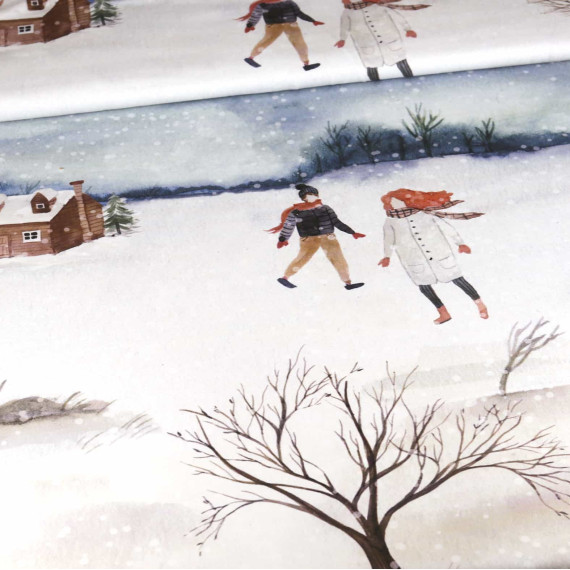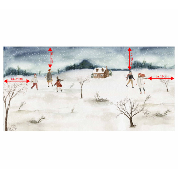 Wundervoller Sommersweat mit hübscher Winterlandschaft mit Menschen im Aquarellstil - hier ein fertiger Zuschnitt von 0,7m! :)