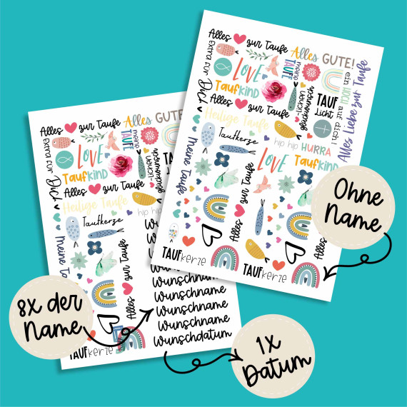 DIN A4 - Tattoofolie - Taufe - Bunt - für Kerzen / Keramik