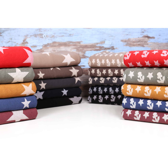 Super kuscheliger Alpenfleece mit coolen Sternen auf einem beigefarbenen Hintergrund mit sandfarbener Innenseite! :)