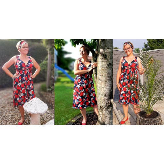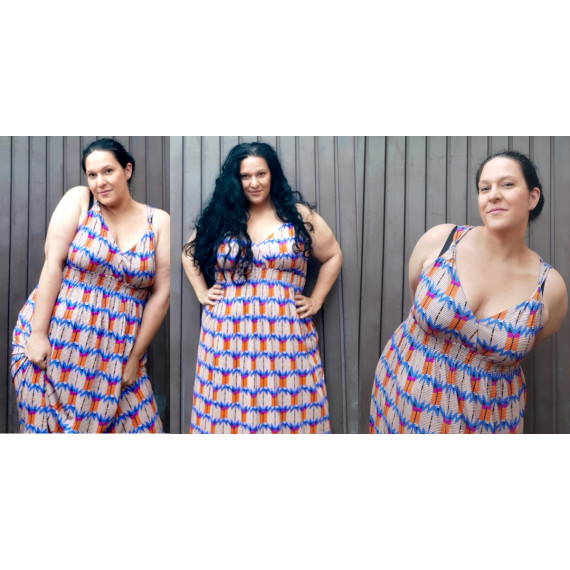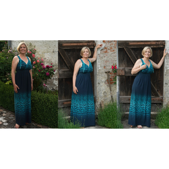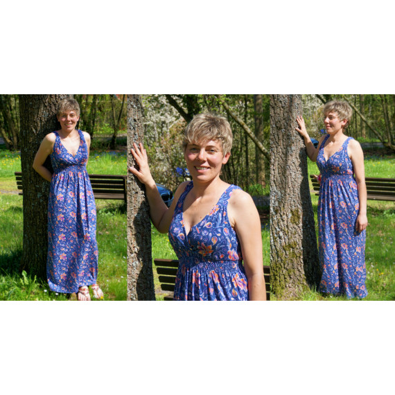 - Direkt an dieses Kleidoberteil werden die beiden Rockteile angenäht. Diese Rockbahnen werden unterhalb der Brust und oberhalb der Taille gesmokt. So entsteht der wallenden, sommerlich leichte Charakter Deiner Angera. Durch die Lage des gesmokten Abschnittes ist Angera ein Figurschmeichler, der kleine Problemzonen einfach weg mogelt. Zusätzlich zu der Maxilänge findest Du im Schnittmuster noch folgende Längen: Top/Tunika, Mini, Midi und Extra Long.