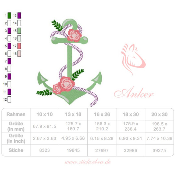 Bringen Sie maritimen Charme in Ihre Stickprojekte – mit diesem liebevoll gestalteten Anker, umrankt von zarten Blumen und einem verspielten Seil.