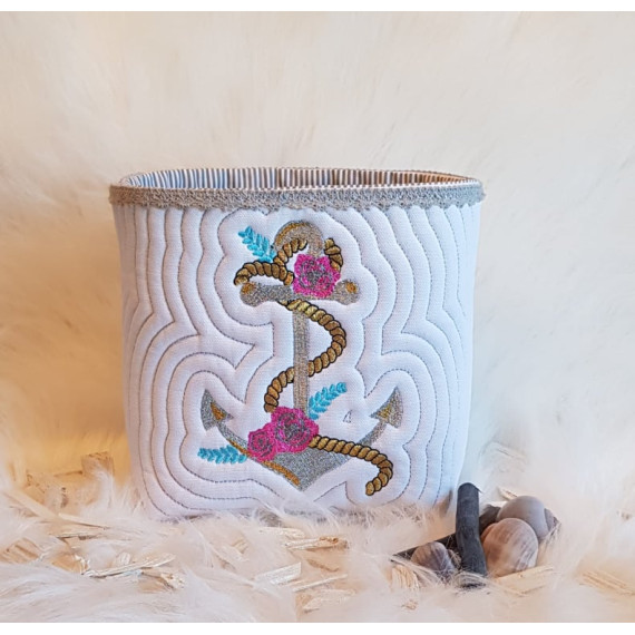 Anker Stickdatei – Maritimes Motiv mit Blumen und Seil
