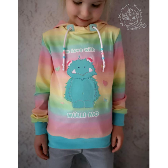 Das Mülli MO als Applikationsvorlage ist für eine Größe von ca. 17 cm optimiert.