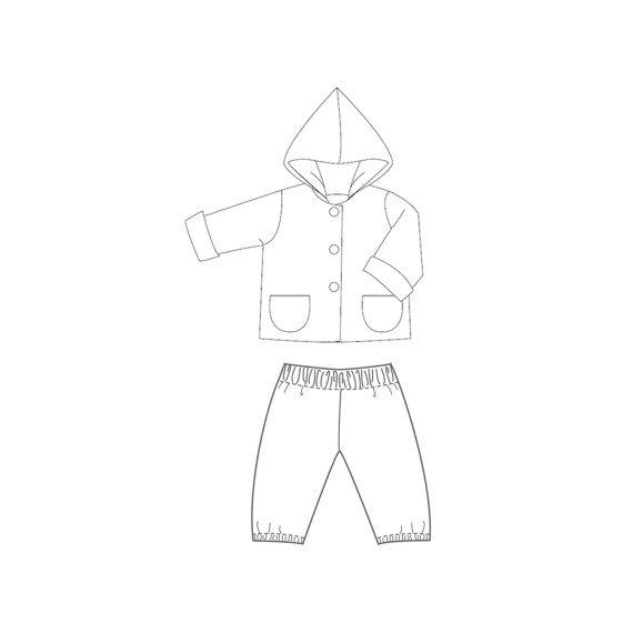 Baby Jacke und Hose Schnittmuster Babyset. Unisex Zipfeljacke für Kinder mit Kapuze Ebook pdf TORINO + TORETTO von Patternforkids Gr. 56 - 98