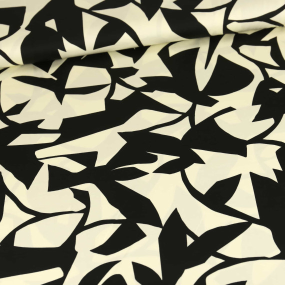 Baumwoll Satin - Webware - Abstraktes Muster - Warmweiß/Schwarz