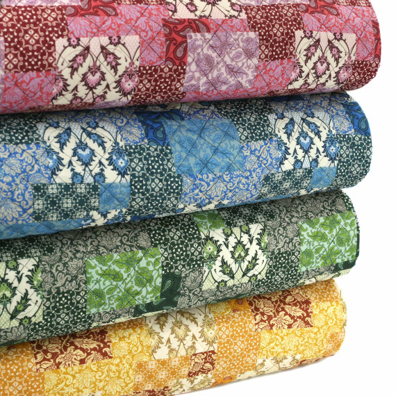 Wundervoller Doubleface Steppstoff mit Patchwork Blumenmuster und eine einfarbige Rückseite! :)
