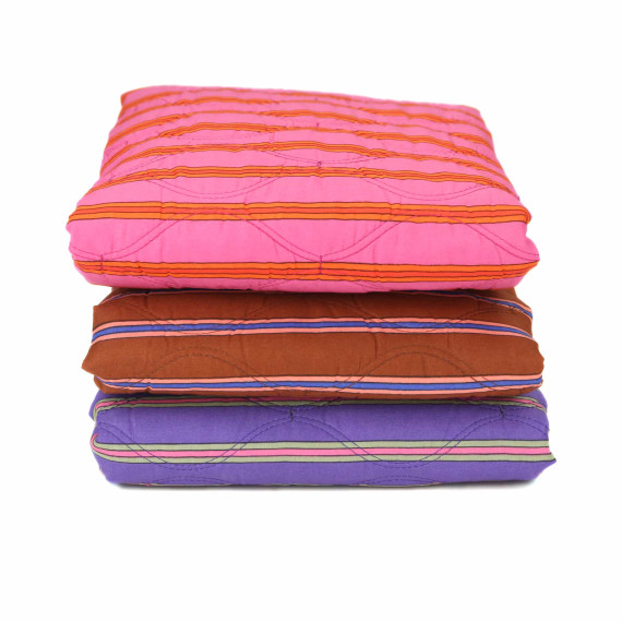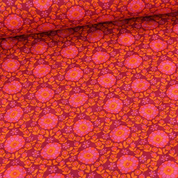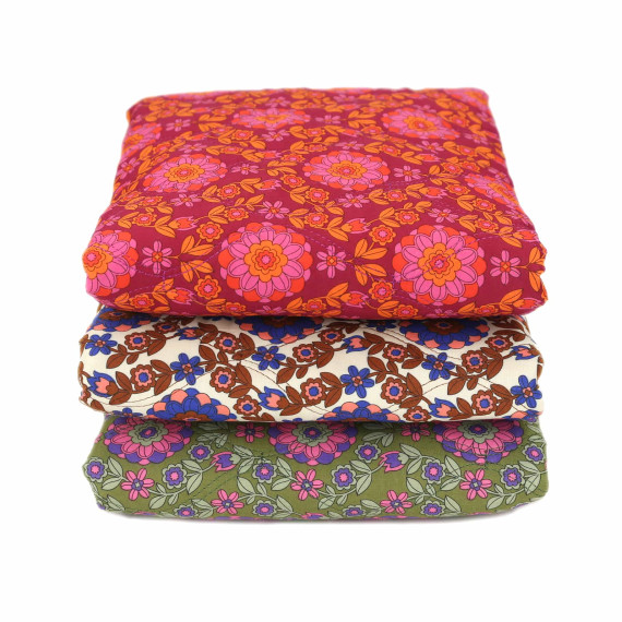 Baumwoll Voile Stepper - Steppstoff - Wattiert - Doubleface - Blumen - Streifen - Bordeaux/Rosa