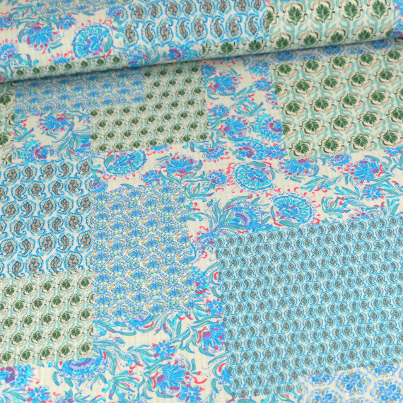 Baumwolle - Webware - Vintage - Blumen Mix - Beige/Cyanblau/Cyanblau