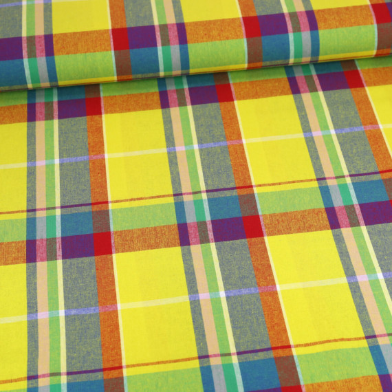 Baumwolle - Webware - Karo - Madras - Schwefelgelb