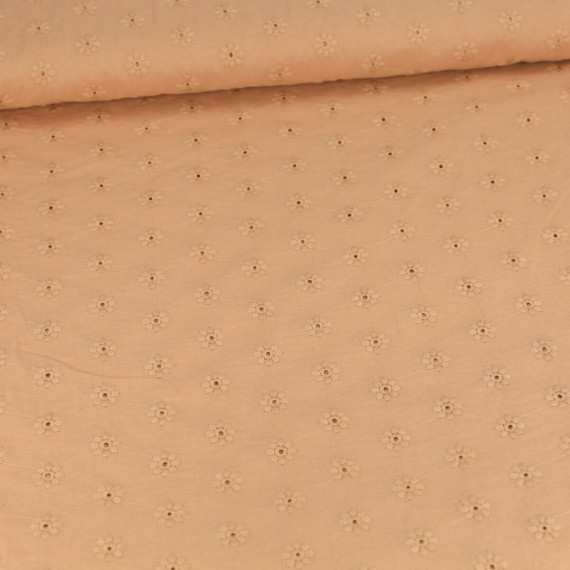 Baumwolle - Webware - Lochstickerei - Qjutie & the Qjutest - Blüten - Pastell Lachsorange