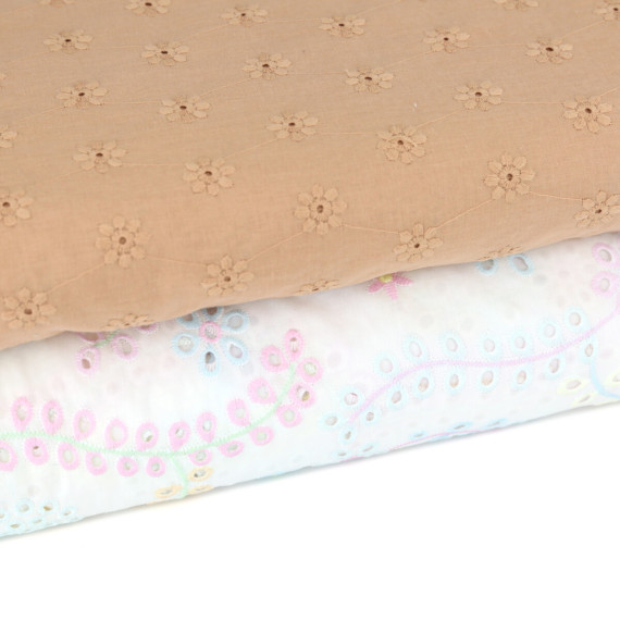 Wundervoller Baumwollstoff mit zarter Blüten-Lochstickerei aus der tollen "Qjutie & the Qjutest"-Serie!