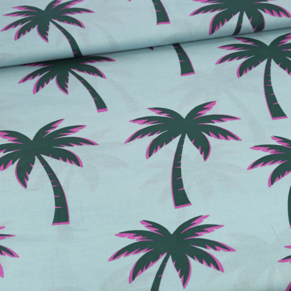 Baumwolle - Webware - Voile - Palm Trees - Altgrün