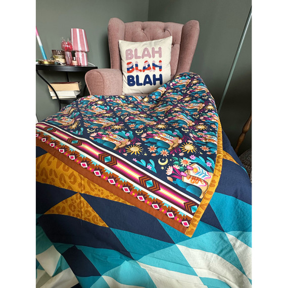 Bio-Baumwolle - Popeline - Western Fairy Tales - Cheater Quilt - Paneel - Hamburger Liebe - Cyanblau