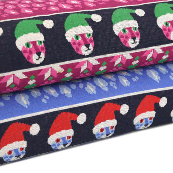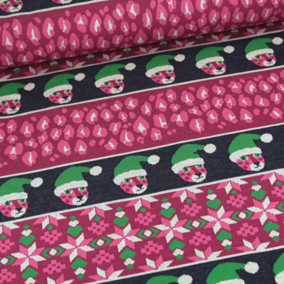 Bio-Jacquard - 6 Farb Spezial Jacquard Jersey - Nordic Leo - Wild XMas 2025 - Beere - Hamburger Liebe