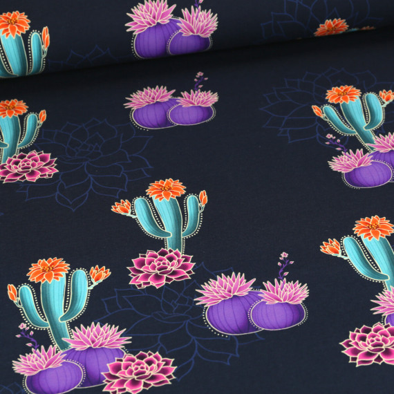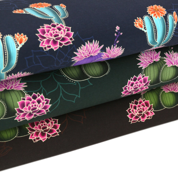 Hier mit Prairie Blüten und Kakteen auf einem stahlblauen Hintergrund.